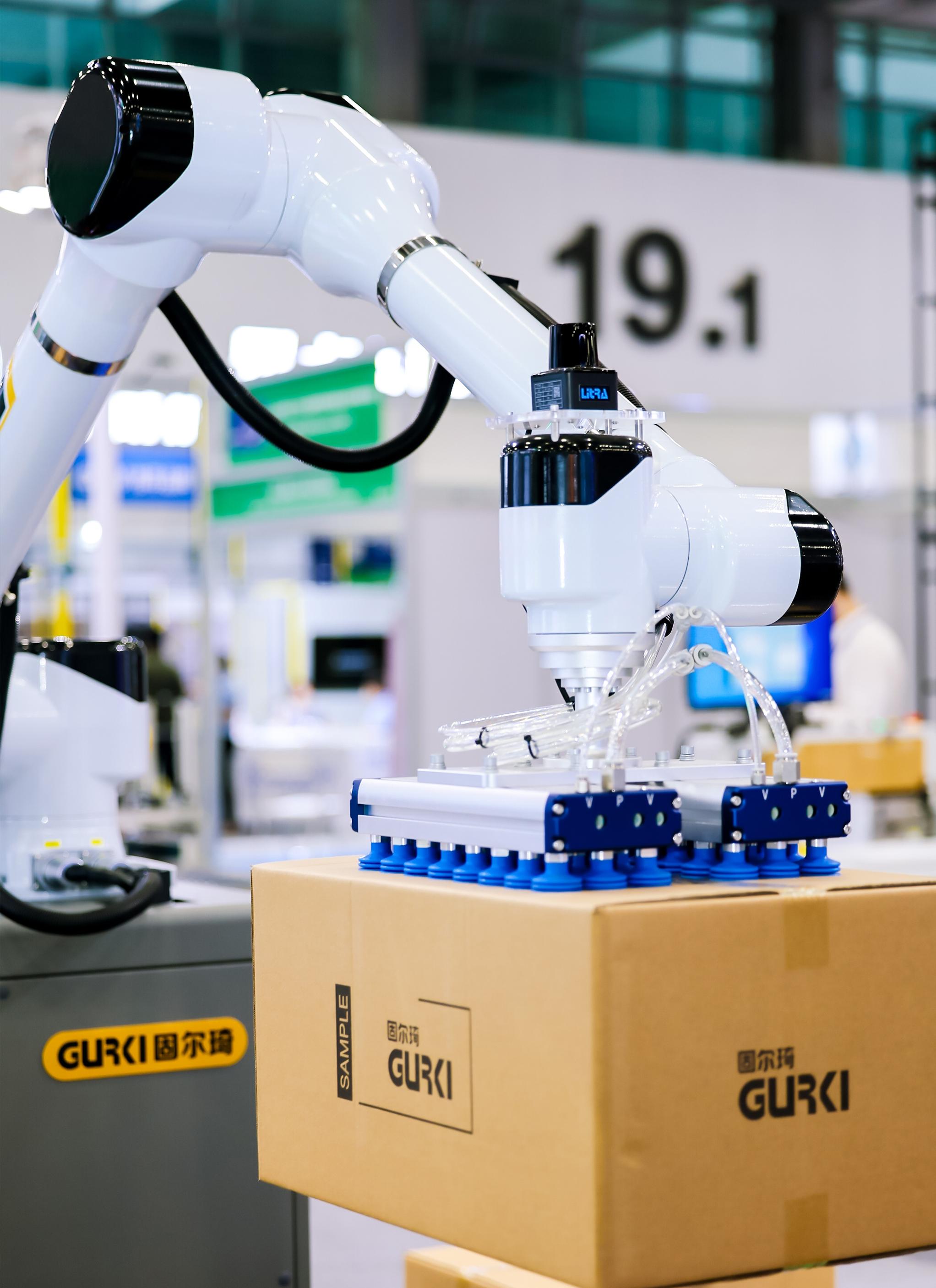 本次展會(huì),固爾琦聚焦“高效、柔性、智能”三大關(guān)鍵詞,展示了覆蓋倉儲(chǔ)分揀、智能打包、協(xié)作機(jī)器人碼垛等環(huán)節(jié)的標(biāo)桿性設(shè)備,打造從商品入庫到出庫的全鏈路智能化作業(yè)流程。