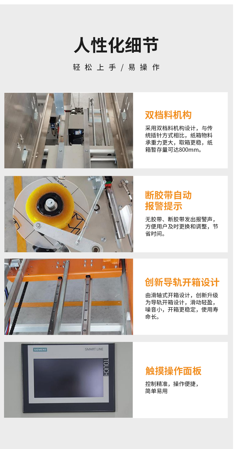 電商封箱機(jī)配套快遞貼面單機(jī),封箱貼面單效率日發(fā)8000+。具備一鍵式傻瓜操作,自動化封箱貼面單一步完成,保養(yǎng)簡單,穩(wěn)定性強(qiáng)的特點(diǎn)