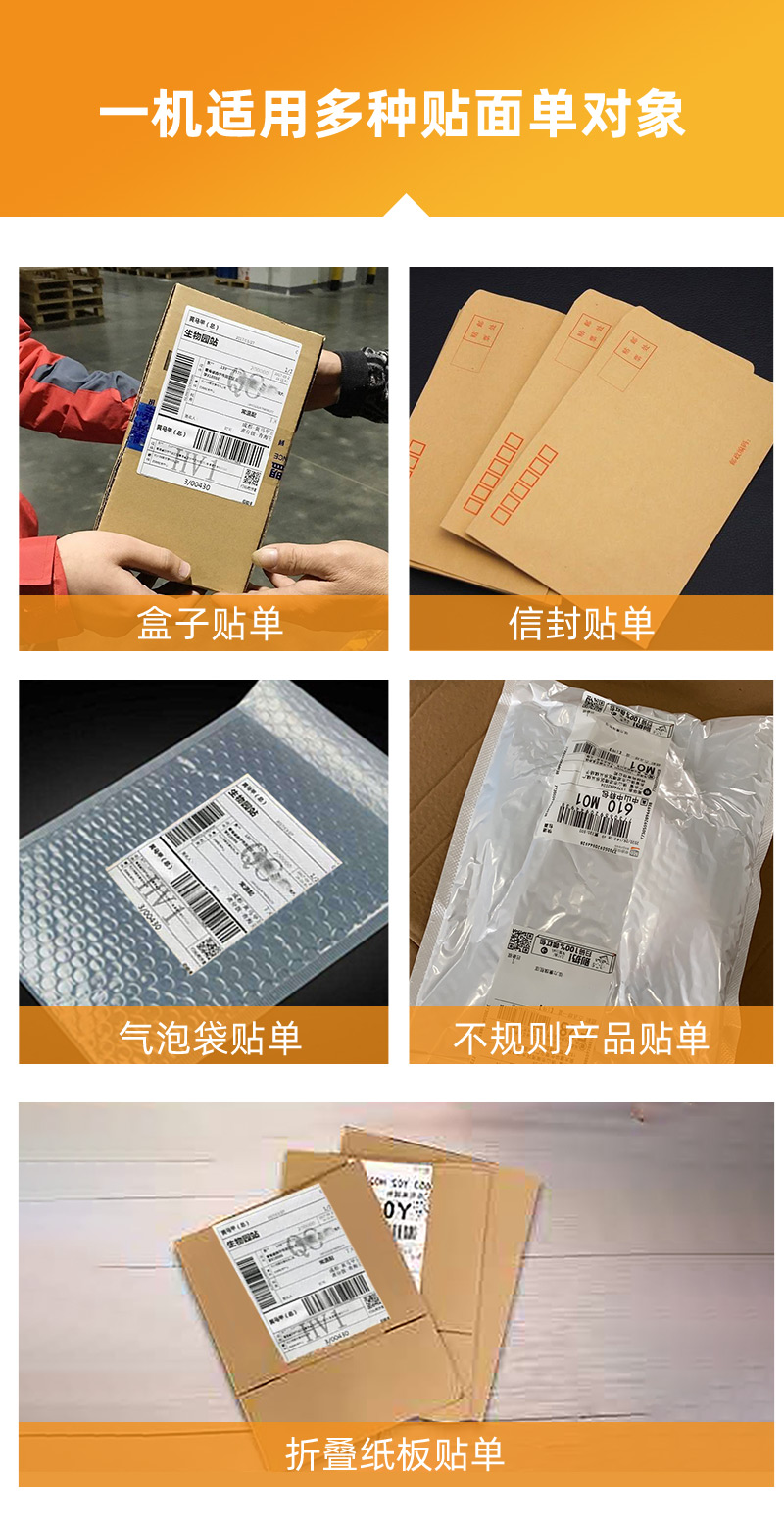 即時打印款快遞貼單機具有自動打印、自動貼面單的特點,是一款針對電商、物流、云倉等多SKU生產(chǎn)設(shè)計的產(chǎn)品,該設(shè)備適用于配套后段打包流水線、封箱機等,可選品自動掃描槍,掃描打印貼單更高效。