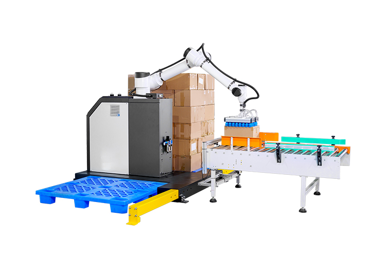 協(xié)作機器人碼垛,與人類工作人員緊密合作,提高生產效率、靈活適應不同任務。安全配備傳感器,能自主學習、為工作人員創(chuàng)造更安全高效的工作環(huán)境,外形精巧美觀,調整方便簡單,本設備采用觸控屏操作,實現(xiàn)智能化操作管理,簡便、易掌握??纱蟠蟮販p少勞動人員和降低勞動強度??瑟毩⑹褂靡部膳涮鬃詣庸C和棧板輸送機來實現(xiàn)全自動碼垛系統(tǒng),廣泛應用于多個行業(yè)的碼垛工序,如紙箱類、醫(yī)藥類、日用品、食品、飲料、化妝品、金屬制品等。