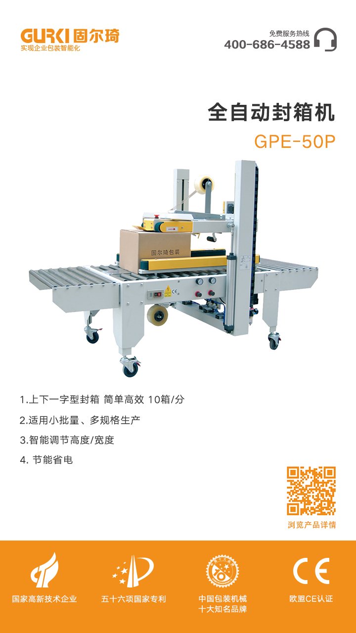全自動封箱機可根據(jù)不同紙箱規(guī)格,自動調節(jié)寬度及高度,操作方便、簡 單、快速。上下一字型全自動封箱,自動化程度高;單機作業(yè),適合小批量、多規(guī)格生產(chǎn)使用。采用即貼膠帶封口,封箱效果平整、規(guī)范、美觀; 也可以采用印字膠帶,更可提高產(chǎn)品形象。